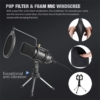 USB Microphone, Professional Condenser Computer PC Mic with Tripod Stand, Pop Filter, Shock Mount for Gaming, Streaming, Podcasting, YouTube, Voice Over, Skype, Twitch, Compatible with Laptop Desktop